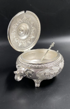 Add grandeur to your festive celebrations with our German Silver Royal Elephant Treasure Bowl.