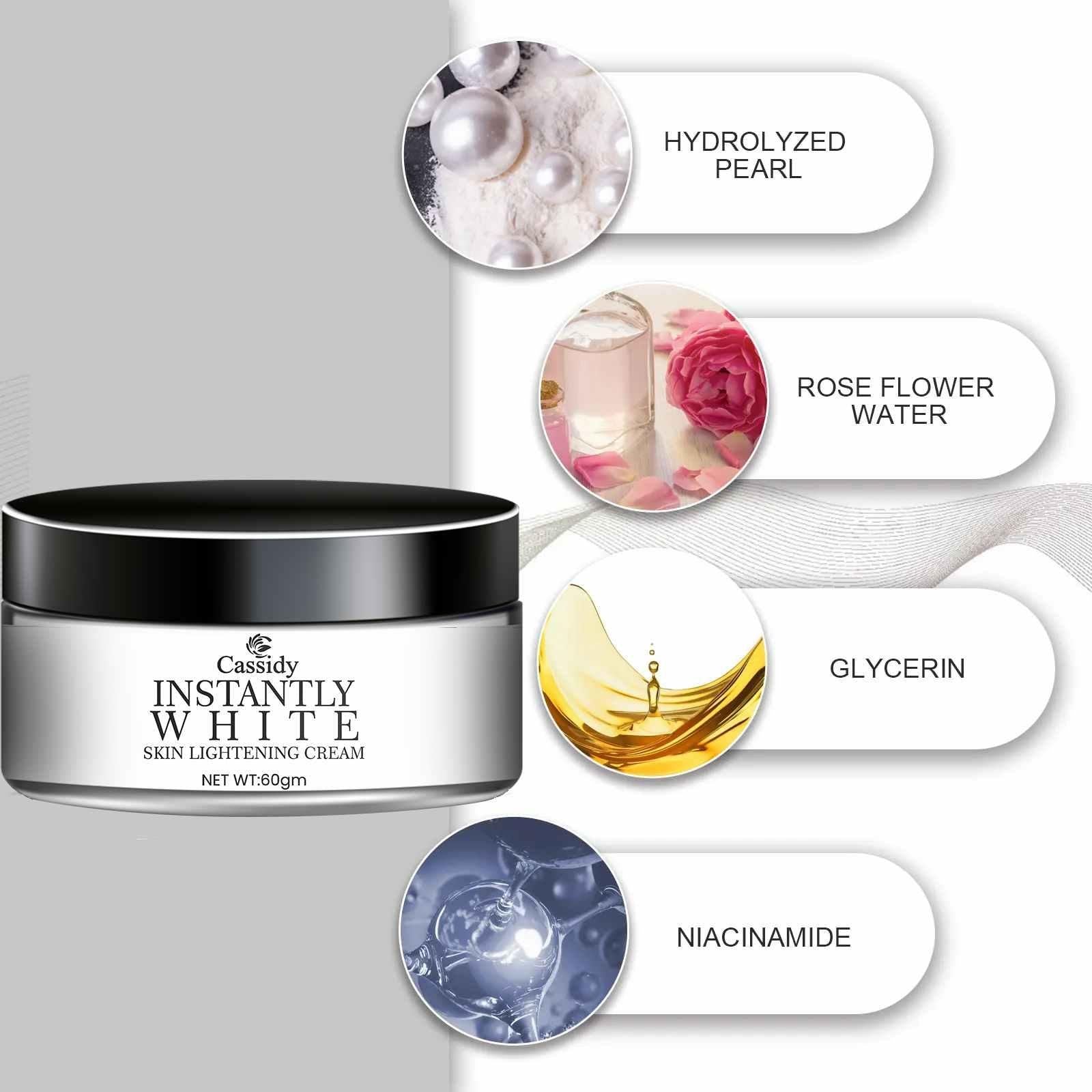 CASSIDY Instantly White Skin Lightening Cream comes in a 60gm jar and is designed to help brighten your skin. This easy-to-use cream works quickly to reduce dark spots and improve your overall skin tone. Suitable for daily use, it helps you achieve a more radiant and even complexion. Just apply a small amount to clean skin and enjoy a brighter, fresher look!