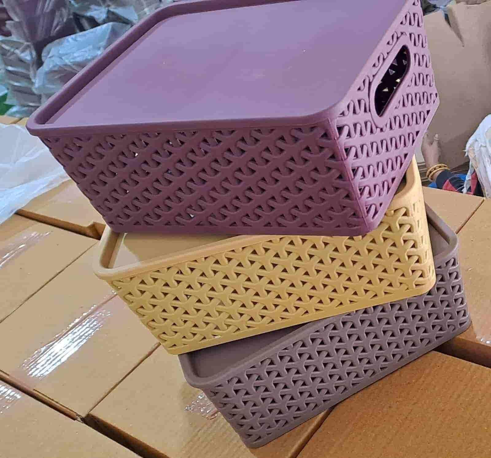 Plastic 3 Pieces Multipurpose Storage Basket With Lid